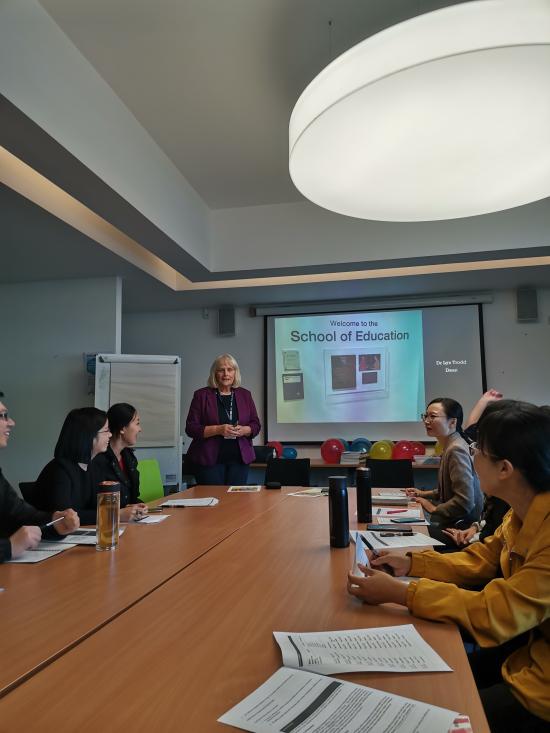 英国赫特福德大学访学系列报道之一:融入生活、规划学习当地时间2019年9月15日晚上,上海市民办高校访问学者团一行共12人顺利抵达英国赫特福德大学,开始了为期3个半月的海外课程研修之旅。我校工学院樊江玲、学前教育学院张丽和赵琼三位老师参加了本次访学项目。开学前一周,赫特福德大学为访学教师们举办了欢迎会,会上教育学院院长详细介绍了学院发展状况,并对从上海远道而来的同行们表示了热烈欢迎。同时为了让访学团尽快适应校园生活,项目组还带老师们参观校园、熟悉周边环境和设施、注册入学、领取校服等事项。(赫特福德大学教育学院院长介绍学院情况并致欢迎词)本次短期访学的学习研2019-12-17