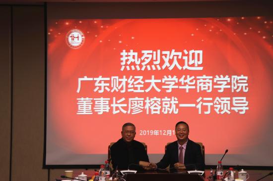 我校与广东财经大学华商学院签订友好合作协议12月12日上午,广东财经大学华商学院董事长廖榕就一行莅临我校参观考察,受到了我校董事长邹荣祥、执行董事长石伟平、党委书记陆建非、校长叶才福、总校监郭伟奇等领导的热情款待。经过一番热烈的交流探讨,双方签订了友好合作协议,承诺未来将在多方面开展深入合作。会上,副校长龚春蕾从坚持立校为公的教育理想、教育学生做人的办学理念、富有学校特色的专业布局、建设以博士为主的教师队伍、大力推进教育国际化等十大方面向华商学院代表介绍了我校德育学分制、经典阅读计划、“活力课堂”、中英文辩论训练等特色教育教学活动以及丰富的党建成2019-12-16 -