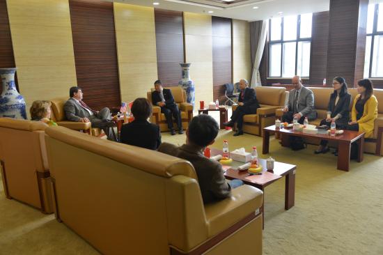 美国田纳西大学查塔努加分校来访,举行合作项目新生开学典礼2019年11月19日,田纳西大学查塔努加分校(TheUniversityofTennesseeatChattanooga)来访我校,就两校合作深入商洽,并隆重举办2019级国际商务专业(国际课程合作)开班仪式。田纳西大学查塔努加分校商学院院长RobertDooley、副院长MichaelJones、系主任KathleenK.Wheatley和国际教育中心主任TakeoSuzuki与50名国际商务(国际课程合作)专业新生见面。我校商学院院长程葆青、国际交流处处长胡珍及国际商务专业(国际课程合作)负责人孙艳2019-11-22 -