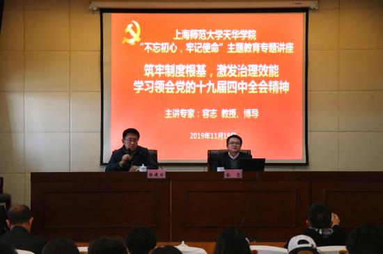 学校开展主题教育专题讲座,学习领会党的十九届四中全会精神11月19日下午,学校开展“不忘初心、牢记使命”主题教育专题讲座,邀请老版新葡萄8883国际官网行政管理系主任、博士生导师容志教授作题为《筑牢制度根基,激发治理效能——十九届四中全会精神学习体会》的报告。学校校务委员会领导、党务干部以及部分党员代表参加讲座。讲座由校党委书记陆建非主持。在10月底召开的党的十九届四中全会上,审议通过了《中国共产党第十九届中央委员会第四次全体会议公报》,出台了《中共中央关于坚持和完善中国特色社会主义制度、推进国家治理体系和治理能力现代化若干重大问题的决定》。新出台的《决定》是坚持和完善中国2019-11-20 -