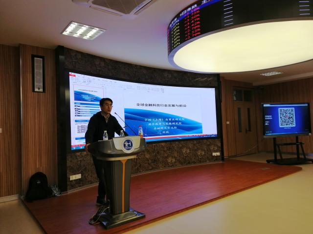 商学院举办《全球金融科技行业发展与前沿》讲座2019年11月18日上午,中国(上海)自贸区研究院(浦东改革与发展研究院)金融研究室刘斌主任应邀来到天华学院给金融数学和互联网金融方向的学生做了一场关于全球金融科技行业发展与前沿的讲座,谢富生老师主持讲座,许多学生慕名而来,现场座无虚席。(刘斌博士做讲座开场白)刘斌博士还是中欧国际工商学院兼职研究员,上海金浦研究院特邀研究员。长期深耕金融科技领域,成果颇丰。著作《金融科技:人工智能与机器学习卷》即将面世。曾经为浦东新区区府政研室、上海联合产权交易所、上海交通大学、上海财经大学等机构讲授区块链和金融科技发2019-11-19 -