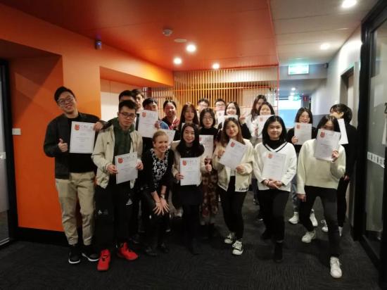 暑期澳洲游学项目圆满结束2019年8月5日-8月26日,我校国际交流处组织学生前往澳大利亚墨尔本参加为期21天的澳洲学习培训及文化体验游学项目。游学团学生通过沉浸式雅思课程,实战听、说、读、写四大模块,搭配丰富的游戏及当地体验,收获了满满的成长与惊喜,学生的英语能力得到提升的同时,视野得到拓展。(同学们收获结业证书)在学习生活中,澳洲作为英语为母语的国家为学生提供了全英的学习环境,课程中不断提升学生们的英语表达及应用水平。在澳洲的游学生活中,学生充分感受到老师们的包容性,不断鼓励学生勇于发表自己的观点,耐心引导学生回答,使学生逐2019-09-24 -