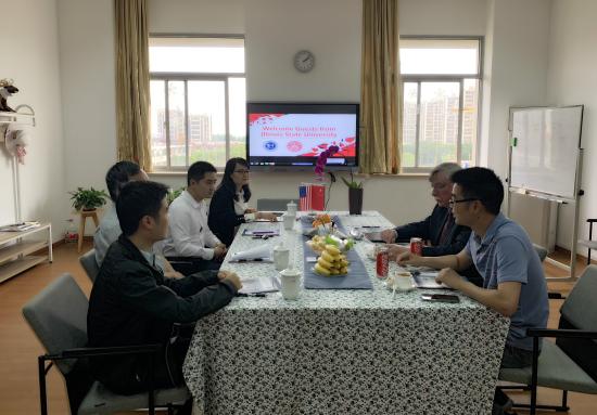 美国伊利诺伊州立大学数学系主任及教师代表来访我校继美国伊利诺伊州立大学分管教学的副校长兼教务长一行4月来访我校、签订两校金融数学专业合作协议后,2019年5月30日该校数学系主任GeorgeSeelinger与教师代表XuMaochao应邀来访,校长叶才福、国际交流处处长胡珍、科研处处长兼管理学院副院长翁跃明、国际交流处副处长梁杰、助理夏智源及金融数学专业教师程成、胡煜中热情接待。数学系主任Dr.Seelinger对天华学院的校园环境及两校之前的合作基础表示赞赏,期待金融数学(国际课程合作)能发挥专业特点,促进两校校际合作新维度。管理学院副院长翁跃明交2019-06-04