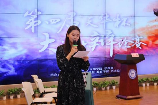 我校隆重举行第四届“天华杯”——庆祝祖国七十华诞,辩出天华学子风采主题辩论赛为培养学生创新思维能力,发挥辩论训练骨干的示范作用,推动全校辩论训练整体发展,唱响学校“第二活力课堂”育人的主旋律。2019年5月21日、24日,学保处分别在晖华楼小剧场和大礼堂隆重举行了第四届“天华杯”——庆祝祖国七十华诞,辩出天华学子风采辩论预决赛。副校长、工学院院长吴国兴,校监史文,校长助理、教育学院院长滕薇,学校党委副书记、学保处处长曹云林,语言文化学院常务副院长陈再阳,校党委组织部部长周凯波;校党委宣传部部长齐砚奎;通识学院副院长聂晓晶,学保处助理以上干部,全体正副辅导员以及各班班长、辩论训练小2019-06-03 -