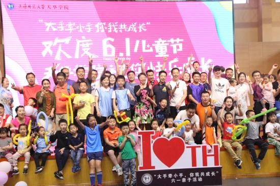 我校举办“大手牵小手,你我共成长”欢度六一儿童节活动6月1日上午,我校在跃华楼体育馆举办“大手牵小手,你我共成长”欢度六一儿童节活动。来自我校教职员工、新宝社区、宜景社区、民乐社区、汇珠社区、越华社区、竹桥村、现龙村、联合金融以及欧美同学会的家庭共同参与了本次活动。活动由我校人事处副处长,工会常务副主席曹卫主持。活动开始,曹卫老师表示希望各家庭能通过此次活动尽情释放活力,留下一个充满甜蜜和幸福的六一回忆。正式游戏开始前进行了简单的热身活动。在场的家庭在教练的引导下,随着音乐的节拍有节奏地拍手跺脚,跳“家务”舞,现场气氛逐渐升温,小朋友们也迅速融入此次活动。2019-06-03 -