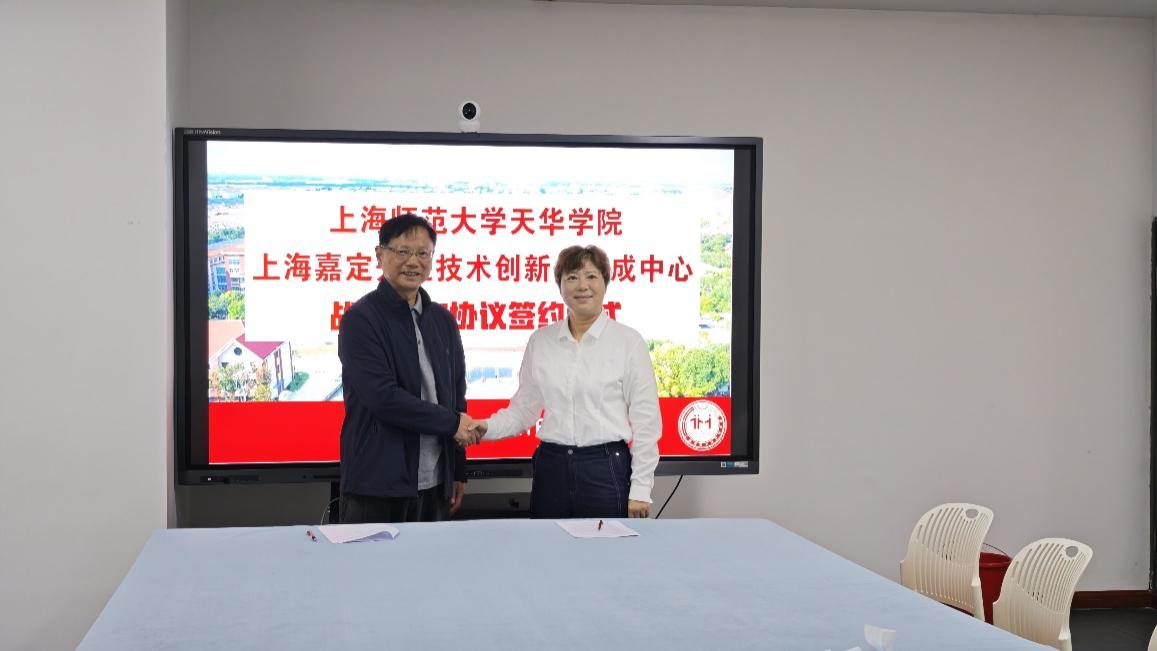 深化产教融合,共绘发展新篇 | 健康学院与上海嘉定先进技术创新与育成中心签署战略合作协议2025年10月21日12:00,健康学院与上海嘉定先进技术创新与育成中心(以下简称“育成中心”)在老版新葡萄8883国际官网东校区(上海天华人工智能科创园)正式签署战略合作协议。出席本次仪式的有老版新葡萄8883国际官网副总校监朱国权、健康学院院长徐晓峰、天华学院对外合作培训学院常务副院长周建文、健康学院党总支书记答英娟,上海嘉定先进技术创新与育成中心主任徐美芳、转化医学网创始人潘浏阳等。在与会人员的共同见证下,徐晓峰院长与嘉定区先进技术创新与育成中心负责人共同签署了战略合作协议。徐院长在签约时强调,此次合作绝非简单的空间扩展,而是天华学院面向未来、服务区域经济发展的战略性抉择。他指出,本次合作将有效打通学术科研与产业应用的“最后一公里”,为师生提供一个“在真实产业环境中学习与创新”的绝佳平台,真正实现教育链、人才链与产业链、创新链的有机衔接。一、强强联合赋能产业升级 育成中心是由上海市嘉定区政府与中国科学院深圳先进技术研究院共建的事业单位,以“引进高端人才与创新项目、推动前沿科研”为核心宗旨。其重点布局领域包括生物医疗技术设备、新能源新材料及物联网产业,已建成先进工业设计中心、生物科技园(Bi2025-10-23 -