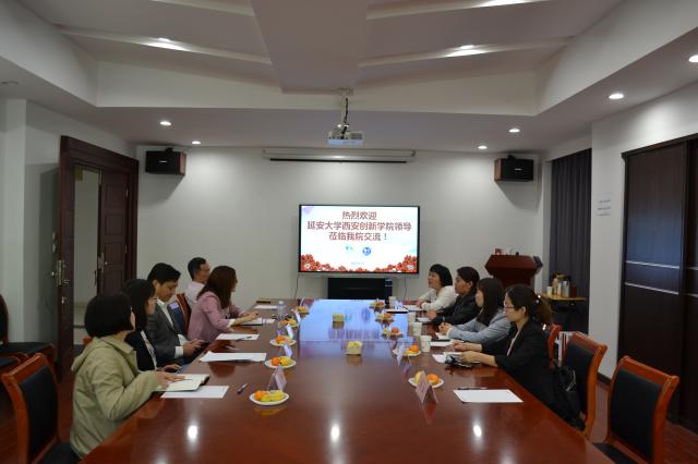 延安大学西安创新学院商学院领导莅临我院调研交流4月23日下午,延安大学西安创新学院商学院常务副院长唐蜀湘、工商管理教研室主任赵娟、经济与旅游教研室主任袁晓梅、会计学教研室主任孙翌华一行四人组成的调研团莅临我校管理学院调研。管理学院副院长兼金融数学专业主任翁跃明、教学副院长蒋亚萍、物流管理专业主任汪沁、财务管理专业主任盛术俊、旅游管理专业主任郭家秀等参加了座谈会。双方就“校企合作”的应用型特色人才培养模式、学科建设的思路与成果、专业培养方案、与实习实训单位合作模式、教材选择、师资配备、毕业论文写作、学生学习效果及毕业去向、实验室建设等进行了交流探讨。(2019-04-23 -