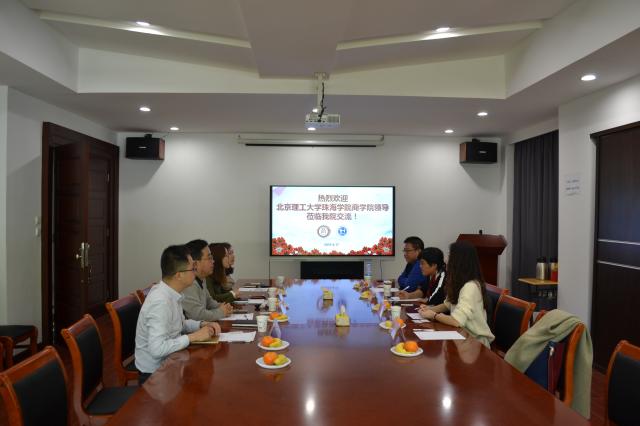 北京理工大学珠海学院商学院领导来我院调研交流4月18日下午,北京理工大学珠海学院商学院副院长王坤、国际商务责任教授余江、国际商务教研室主任潘妙芸一行三人组成的调研团来我校调研。管理学院副院长蒋亚萍、国际商务专业主任及教师于凤艳、胡伟、顾贤华等参加了座谈会。双方就国际商务人才培养方案、专业建设、国际办学、外语学习、专业竞赛、创新创业与专业课程的融合、实验室建设等方面的工作进行交流探讨。(双方正在座谈)座谈会后,北京理工大学珠海学院商学院调研团一行参观了我校智慧教室、管理学院实训中心等校园基础设施。(调研团一行参观智慧教室、管理学院实训中心等校园基础设2019-04-18 -