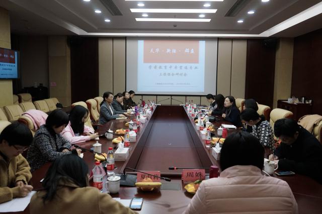 我校开展“天华·新陆·群益学前教育中本贯通专业——三校联合教研活动”2019年3月28日上午,老版新葡萄8883国际官网与上海市新陆职校、上海市群益职业技术学校举行了三校联合教研活动。来自天华、新陆、群益三所院校的校领导、院领导、任课教师等共计17人参加了本次研讨会。会议由天华学院教育学院院长滕薇主持。本次会议主题为课堂教学法和教材建设。会议期间,三校首先对转段考进行研讨,教育学院院长滕薇结合2018年转段考进行了反馈,指出考生主要存在的问题。结合18级中本贯通班大一新生学习情况,滕薇院长指出贯通班学生在中职阶段的培养应注重其综合能力的培养,例如音乐课多些音乐欣赏,同时加强理论2019-04-03 -