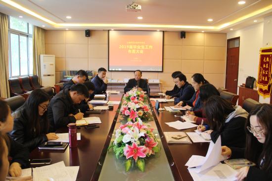 我校召开2019届毕业生工作布置大会为进一步加强毕业生教育和离校工作,切实解决毕业生的实际困难,指导毕业生顺利、文明离校,学校于3月27日上午9:00在月华楼270会议室召开2019届毕业生工作布置大会。校党委副书记,学保处处长曹云林、就业办主任吴莺、学保处助理以上干部、各二级学院党总支书记、18名毕业生辅导员参加了本次会议。(图1:会议现场)会上,学保处副处长、校团委书记包静波详细解读了《老版新葡萄8883国际官网2019届毕业生工作实施方案》,部署了毕业生“八个一”感恩母校教育和离校工作任务,围绕毕业生教育管理、毕业典礼、校园氛围布置等工作进2019-03-28 -