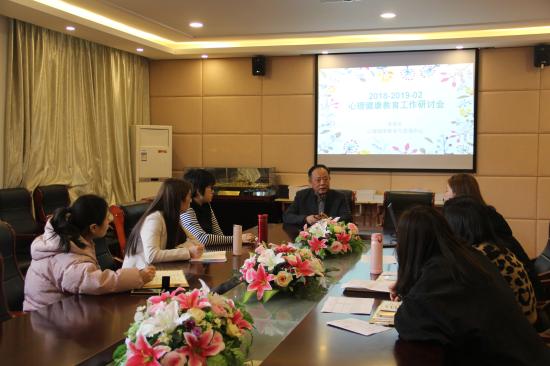 学保处召开2018-2019学年第二学期心理健康教育工作研讨会为营造健康平安校园环境,深入开展心理健康教育工作,2019年3月26日中午1:00点,在月华楼270会议室,学保处召开了本学期心理健康教育工作研讨会。校党委副书记兼学保处处长曹云林、学保处处长助理郭阿诺、校心理健康教育与咨询中心主任黄璐以及各二级学院心理健康教育负责老师出席此次会议。会议由校心理健康教育与咨询中心主任黄璐主持,六个学院心理健康教育工作负责老师首先汇报了本学院心理健康教育工作,对所在学院学生的心理健康现状进行讨论和分析,对进一步做好心理健康教育和安全工作提出建议。同时,在座老师对于典型个案进2019-03-28