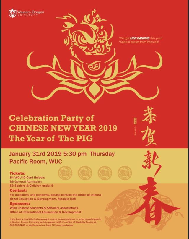我校学前教育(中外合作办学)专业赴美学生在西俄勒冈大学举行春节联欢晚会美国西部时间2018年12月31日18点,在数百赴美游子的热切盼望中,西俄勒冈大学(WesternOregonUniversity)迎来了猪年春节的除夕夜。西俄勒冈大学中国学生学者联谊会(WOUCSSA)为庆祝这一盛大节日,隆重举办了2019猪年春节联欢晚会,也为2016级学前教育(中外合作办学)专业出国同学留下了难忘的回忆。(图1:西俄勒冈大学2019年春节联欢晚会的宣传材料)此次春晚在热闹的舞狮表演中拉开帷幕,点燃了现场的气氛。(图2:开场节目舞狮表演)由学前教育(中美合作)1班的葛舒铭、徐瓅文、冷隽2019-02-20