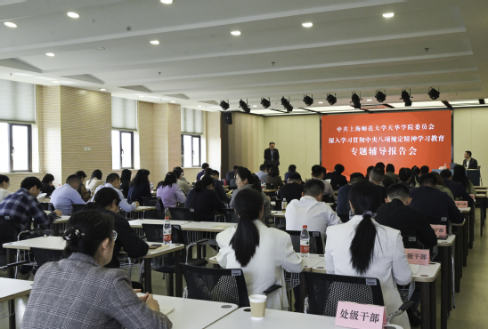 围绕深入贯彻中央八项规定精神学习教育,学校党委中心组(扩大)学习会听取专题辅导报告4月16日下午,学校党委举行理论学习中心组专题学习会,听取市委党校常务副校长曾峻所作的“学习领会习近平总书记关于加强党的作风建设的重要论述和中央八项规定精神”专题辅导报告。学习会由党委书记高建华主持,学校党委理论学习中心组成员、全体处级干部共同参加学习。曾峻紧扣学习主题,围绕《习近平关于加强党的作风建设论述摘编》,紧密联系实际,从新时代加强党的作风建设的重大意义、基本经验和进一步推进作风建设等方面,作了深入解读阐释。会议要求,要高度重视、认真组织开展深入贯彻中央八项规定精神学习教育,学校党政领导、全体处级干部要提高政治站位,带头学习、带头研讨、带头加强作风建设;要即知即改、加强作风建设,切实提高思想认识、解决突出问题、锤炼坚强党性、激励担当作为;要结合实际、提升工作成效,把学习教育与建校二十年、新校区建设、本科专业调整、评估转设等要事实事,与各学院各部门重点工作结合,一体推进党风政风、师德师风、校风学风建设,确保学习教育取得实实在在的成效。会议强调,要以本次报告会为契机,扎实开展学习教育,聚焦主题,把握关键,努力做到学有质量、查有力度、改有成效,确保本次学习教育有序有效开展并达到预期目2025-04-17 -