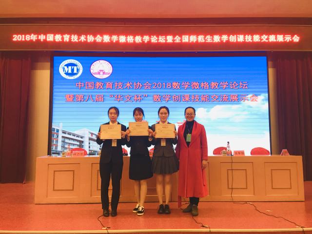 我校学生在第八届“华文杯”全国高等院校师范生数学创课技能大赛中获佳绩2018年11月25日,由中国教育技术协会微格教学专业委员会主办,广西省桂林市广西师范大学承办的2018年中国教育技术协会数学微格教学论坛暨第八届“华文杯”全国高等院校师范生数学创课技能大赛隆重举行。2018-11-30 -