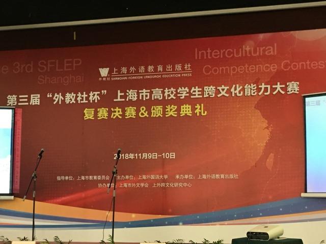 语言文化学院英语专业学生获第三届“外教社杯”上海高校学生跨文化能力大赛三等奖2018年11月10日,第三届“外教社杯”上海市高校学生跨文化交际能力大赛决赛在上海外国语大学顺利举行。2018-11-13 -
