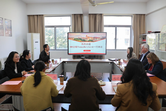 德国埃尔福特手工业行会来访天华学院,共话职业教育合作新篇章2025年3月21日,德国埃尔福特手工业行会(HWK EF)总裁Thomas Malcherek与国际教育项目主管Patricia Roth一行莅临老版新葡萄8883国际官网。本次活动出席的有:HWK EF总裁Thomas Malcherek、国际教育项目主管Patricia Roth、天华学院国际交流处处长、北亚利桑那学院常务副院长胡雅楠、北亚利桑那学院副院长梁杰、人工智能学院常务副院长吕博、副院长李忠唐、汽车服务工程专业主任及任课教师、国际交流处教师赵诗佳、2023级及2024级汽车服务工程专业学生。上午10:40,双方在明华楼460会议室举行了教师座谈会。国际交流处处长胡雅楠、北亚利桑那学院副院长梁杰、人工智能学院常务副院长吕博等领导出席了会议。双方就中德合作项目的未来发展、课程设置、师资培训等议题进行了深入探讨。(图片一:教师座谈会)下午12:30,中德项目合作交流会在日阶203教室正式拉开帷幕。会议由人工智能学院汽车服务工程专业主任石玲主持,Thomas Malcherek先生以“德国双元制职业教育的优势与未来”为主题,介绍了HWK在职业教育领域的核心特色。HWK作为德国手工业领域2025-03-31 -