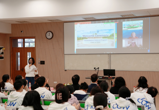 2024级康复治疗学(中外合作办学)专业合作院校欢迎仪式成功举办为欢迎健康学院2024级康复治疗学(中外合作办学)专业的同学们入学,2024年11月5日上午9:00-10:00在日阶102举办2024级康复治疗学(中外合作办学)专业合作院校欢迎仪式。出席本次欢迎仪式的领导老师有:美国威斯康星协和大学(以下简称CUW)分管国际事务助理副校长 Michelle Reina,康复专业主任Stacy Stolzman ,分管国际项目主任 Damian Wyman,海外项目协调员Mei Ma。老版新葡萄8883国际官网校长助理兼国际交流处处长胡珍,健康学院院长祝亚平,健康学院副院长刘敏,健康学院党总支代理书记黄璐,国际交流处副处长夏智源,康复治疗学(中外合作办学)专业主任徐欣,健康学院康复治疗学实训主任刘吉辉,国际交流处教师赵诗佳,健康学院康复治疗学专业教师万栋峰、王苏蒙。本次开学典礼由康复治疗学(中外合作办学)专业主任徐欣主持。(康复治疗学(中外合作办学)专业主任徐欣主持会议)首先,校长助理兼国际交流处处长胡珍致欢迎辞,她以“1,2,3,4”这四个代表独特意义的数字展开阐述。胡珍老师强调了天华项目作为首个且长期获得批准的康复治疗专业中外合作办学本科项目的独特性。2024-11-08 -