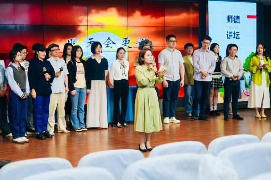 我们都是“四个引路人”:学校举办第七期师德讲坛1111MicrosoftInternetExplorer402DocumentNotSpecified7.8 磅Normal0做学生锤炼品格的引路人,做学生学习知识的引路人,做学生创新思维的引路人,做学生奉献祖国的引路人。为加强学校师德师风建设,引导教师成长为有理想信念、有道德情操、有扎实学识、有仁爱之心的“四有好老师”,2024年5月31日12:30,教师工作部与商学院在晖华楼小剧场联合举办了第七期师德讲坛“我们都是‘四个引路人’”。学校党委书记高建华、副校长吴国兴、宣传部部长齐砚奎、实习实训处处长符跃明等出席了本次活动。学校教学名师、新教师及学生300余人踊跃参加。教师工作部副部长李艳艳主持了本次活动。(教师工作部副部长李艳艳主持)高建华书记为师德讲坛致辞,指出“四个引路人”既是对新时代教育工作者的殷切期望,也是对每一位教育工作者的具体要求。我校一直高度重视师德师风建设,积极开展相关活动。充分发挥各二级学院特色与教师专长,设计了全新的情景剧表演,引导教师爱专业、爱学院、爱学校,打造了实现学生与教师的联动课堂,落实立德树人根本任务,实现“三全育人”新格局。希望广大教师要以“四个引路2024-06-05 -