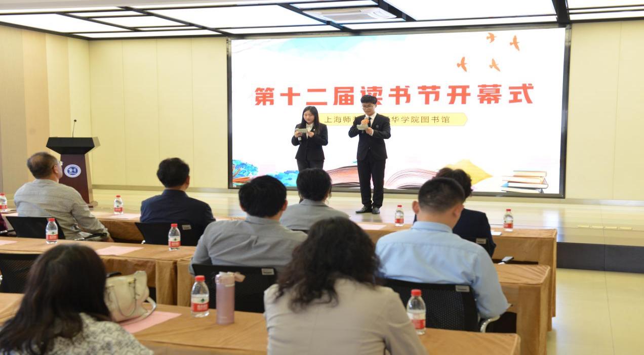 我校图书馆举办第十二届“书香润天华·阅享守初心”读书节开幕仪式2024年5月8日中午,我校第十二届“书香润天华·阅享守初心”读书节开幕仪式在图书馆四楼报告厅隆重举行。副校长王友根,高级顾问陈颖书,学校校监、初等教育学院院长史文,学前教育学院院长滕薇,语言文化学院院长陈再阳,党委组织部部长周凯波,资产设备处处长朱清,实习实训处处长符跃明,人事处常务副处长曹卫,资产设备处副处长董海霞、周建文,图书馆常务副馆长许树梅及教师和学生代表出席了开幕仪式。本次读书节以“书香润天华,阅享守初心”为主题,旨在通过丰富多样的活动形式,激发广大师生的阅读热情,推动我校阅读活动的深入开展。(读书节开幕仪式现场)开幕仪式首先由图书馆常务副馆长许树梅详细介绍了本次读书节的各项活动和安排,包括“你选书,我买单”新书现场闪借、“爱朗读”教职工情景诵读大赛、科研论文写作与AI工具合理利用、“声音的艺术”在美育中探索音乐知识的奥秘、第三届图书馆数据库检索大赛、共赏沪上“繁花”品读海派文化、第三届“青春天华”诗词大会、舞台剧《诗经-卫风-氓》、“书香致远·光影留声”原著改编电影展、2024“阅途杯”讲书人短视频创作大赛、2024“博看杯”上海市诵读大赛等11项活动。(许树梅馆长介绍读2024-05-09 -