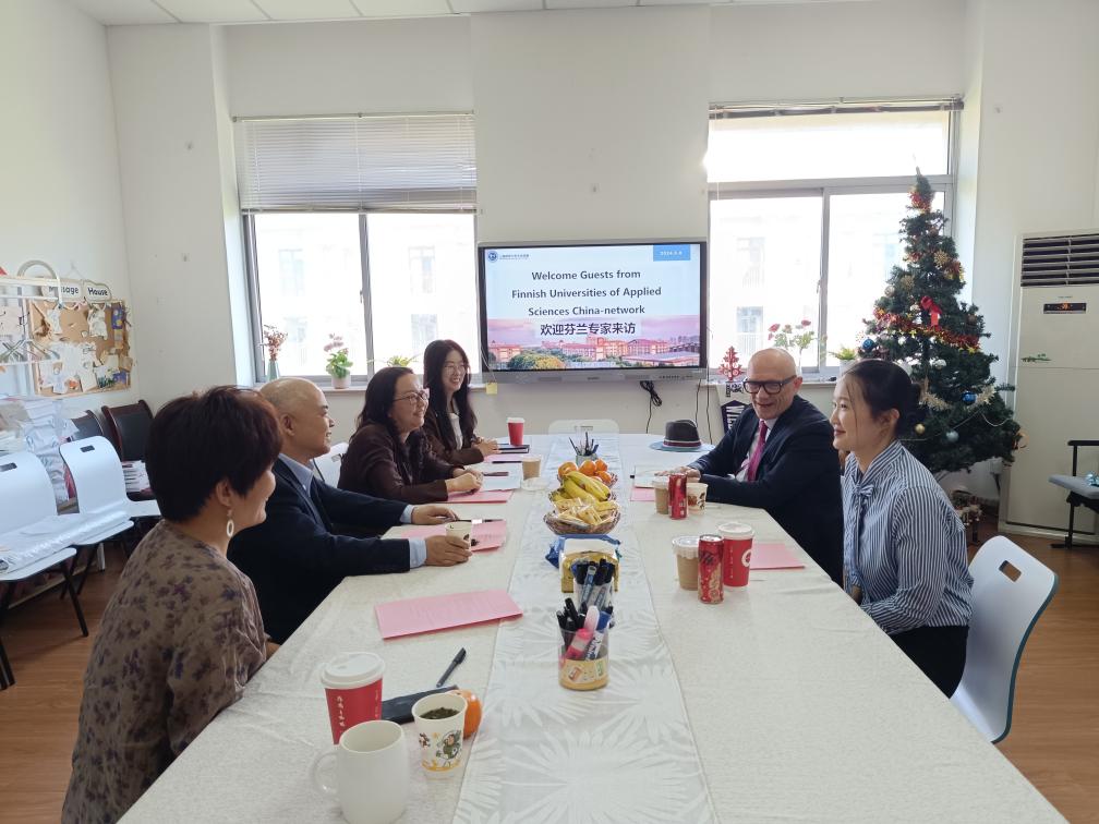 芬兰应用科学大学联盟代表来访1111MicrosoftInternetExplorer402DocumentNotSpecified7.8 磅Normal05月8日上午,芬兰应用科学大学联盟项目主管PasiHalmari先生和Jenni女士一行莅临我校,校长叶才福、副校长龚春蕾、国际交流处处长胡珍等出席会议。图片一:芬兰应用科学大学联盟代表来访会议由国际交流处处长胡珍主持。首先,校长叶才福、副校长龚春蕾分别对Pasi先生和Jenni女士的到访表示热烈欢迎,并强调了芬兰应用科学大学联盟是我们可靠的合作伙伴,表达了中芬双方合作互惠互利的愿景。Pasi先生也表示了感谢之情和合作意向。随后,国际交流处张灏老师详细介绍了天华学院和国际合作项目的情况,包括我校合作项目的进展与规划、国际化办学取得的成绩、上海市幼儿园园长培训的举办、以及校园的配套设施等,使芬兰专家们对天华学院的国际化办学水平有了更加全面的了解。在随后的合作洽谈中,Pasi先生和Jenni女士对天华学院在推动国际合作与交流方面所取得的成就表示了充分的肯定。双方就中芬教师教育上海中心的建设、上海市幼儿园园长培训的进展等进行了深入的探讨,对未来可能的合作方向进行了梳2024-05-09 -