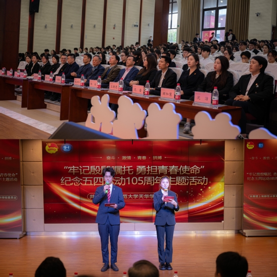 向青春报告!校团委举行“牢记殷殷嘱托,勇担青春使命”纪念五四运动105周年主题活动为全面贯彻落实党的二十大精神和习近平总书记关于青年工作重要思想,激励和动员全校广大团员青年继承和发扬五四精神,全面展现青年奋发进取地精神面貌,4月29日,牢记殷殷嘱托,勇担青春使命”纪念五四运动105周年主题活动在晖华楼小剧场隆重举行。校党委副书记、学保处处长曹云林,校党委书记助理、武装部部长卢建兵,学保处常务副处长包静波,学保处副处长刘洪伟、邵海波,学保处副处长兼校团委书记杨央,团委副书记沈捷、王晓亮,以及各二级学院分管学生工作的党总支副书记、分团委书记,团员青年代表们出席活动。(图片一)大会在庄严的国歌声中拉开帷幕,入团仪式是团员重要仪式教育载体,在新团员集中入团仪式上,新团员代表领取团徽、团员证,在优秀团员代表带领下进行宣誓,李佳翎同学作为新团员代表发言。学保处副处长、校团委书记杨央向新团员提出希望和要求。(图片二)2023年,学校各级团组织严格落实团中央“三会两制一课”要求,认真践行“为做人而学习”的校训,巩固拓展团员和青年主题教育成果,着力夯实基层基础,投身科技创新、乡村振兴等多领域,在加强学生思想政治教育、校园文化建设、素质能力提升等方面取得了良好成效,涌现出一大批先进典型2024-04-30 -