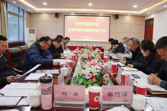 校党委书记高建华赴学保处专题调研学生工作1111MicrosoftInternetExplorer402DocumentNotSpecified7.8 磅Normal02月27、28日,校党委书记高建华赴学保处专题调研学生工作,校党办主任、宣传部部长齐砚奎陪同。校党委副书记、学保处处长曹云林,校党委书记助理、武装部部长卢建兵,学保处常务副处长包静波,学保处副处长刘洪伟、邵海波,学保处副处长、校团委书记杨央,各二级学院党总支书记参加。(图片一)27日高书记到生活区检查了各楼宇学生住宿情况,各二级学院党员工作站运行情况,学校指挥中心校园各个监控点的完好情况,对各场所的建设既给予充分的肯定,又提出了进一步发展提升的要求;28日高书记检查了月华楼爱国主义教育大厅、退役军人服务站、大学生活动中心、德育学分工作办公室等场所,在月华楼270会议室听取学保处学生工作的汇报。(图片二)(图片三)校党委副书记、学保处处长曹云林围绕十二项特色工作,六项常态工作对我校的学生管理工作、辅导员队伍建设、团学工作、校园安全、宿舍管理等进行全面汇报,分析了当前工作的重点和难点。曹云林表示,学保处将继续以创新高质量、全学段、全方位的学生思政工作育人体系为目标2024-02-29 -