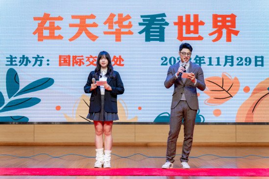 国际交流处举办全校“World @ Tianhua”主题活动1111MicrosoftInternetExplorer402DocumentNotSpecified7.8 磅Normal0秉承“专、通、雅”教育理念,聚焦开拓学生国际视野,推进“在地国际化”在校扎根,营造国际化校园环境,国际交流处于2023年11月29日晚在校体育馆举行“World @ Tianhua”(在天华。看世界)年度活动。学保处、二级学院领导、国际交流处全体人员和10位外籍教师以及来自各学院的学生,共计500余人参加。(图片一:活动现场主持)本次活动的首项议程是为获得2023-2024学年中外合作办学项目双学位专项奖学金的学生举行颁奖仪式。合作办学项目专项奖学金评选分为语言类和留学类两个专项奖学金,本学年共有15人获得语言类奖学金,其中一等奖11人,二等奖4人。2022-2023学年合作办学项目出国学生共21人学成归国,获得留学类一等奖的学生2人,二等奖3人,三等奖5人,获得优胜奖的学生5人。国际交流处处长胡珍、健康学院党总支书记蔡勇永、学保处副处长杨央为荣获奖学金的学生代表颁奖。此次获奖的同学在校内及海外交流期间都表现出了勤奋踏实、认真刻苦、不断挑战自我、超越自我的学习2023-12-07 -