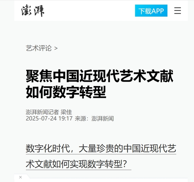 上观新闻 | 艺术文献数字化转型,因何必要且迫切来源:上观新闻 2025年7月16日标题:艺术文献数字化转型,因何必要且迫切作者:文汇报 李婷国内首家“中国现当代美育文献数字博物馆”将推出。艺术文献数字化转型不仅是技术革新,更是美育生态重构的重要契机。文汇报记者从日前举行的“当代美育生态中艺术文献数字化转型”学术研讨会上了解到,国内首家“中国现当代美育文献数字博物馆”将推出,与此配套的线下实体馆也在老版新葡萄8883国际官网紧锣密鼓地规划建设中。它以新文科理念为引领,意在让“国家记忆”活在当下,为社会各方提供重要的知识服务;同时运用数字化技术将研究成果加以呈现、转化,实现相关资源库化、馆化、业化的转型发展,藉此造福学林,赋能社会美育。“以美育人,关乎价值观、民族创造力、想象力的培育。”国家社科基金艺术学重大项目“中国近现代美术国际交流文献研究”首席专家李超认为,在中西文化兼容共生的语境下,美育文献作为重要学术资源,在相关历史维度上,对传承中华美育精神,讲好美育救国、美育兴国和美育强国的中国故事,有着重要价值。广西艺术学院中国画学院院长李永强以20世纪上半叶寓居于上海的意大利查农为例,这是一位热爱中国艺术的画家,曾两次来华,寓居上海,与刘海2025-07-16 -