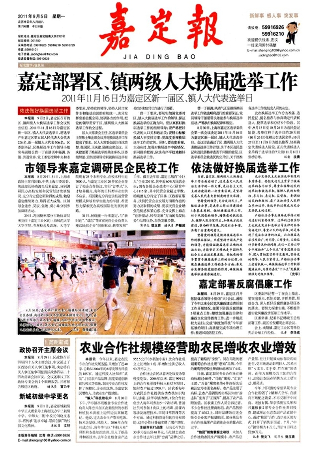嘉定报 | 市领导来嘉定调研民企民校工作来源:《嘉定报》 2011年9月5日 第1版标题:市领导来嘉定调研民企民校工作记者:樊玉青、严敏超链接:http://www.jiadingbao.cn/Article/index/aid/183614.html本报讯 8月29日、31日,上海市政协主席冯国勤、中共上海市委常委、统战部长杨晓渡先后来嘉定,分别调研民办高校发展和民营经济发展情况,充分肯定嘉定所取得的成绩,勉励嘉定继续努力,取得更大成绩。区领导金建忠、吴辰、张敏、费小妹分别参加调研活动。29日,冯国勤率部分市政协委员来到位于嘉定工业区的老版新葡萄8883国际官网,参观校舍及设施。天华学院现有23个本科专业,在校本科生近7000人,与嘉定工业区20多家企业签订了校企合作协议,实行“订单式”人才培养模式,每年的工科类毕业生供不应求。冯国勤充分肯定该校运营管理模式和培育学生能力的举措,希望努力探索民办高校国际化发展的新路。31日,杨晓渡一行来嘉定,与“新时达”、“瑞尔”等8家民营企业负责人座谈民营企业“创新驱动、转型发展”工作。截至去年底,嘉定已培育“小巨人”企业256家,其中近60%为民营企业;拥有各级企业技术中心(研发中心)1152011-09-05 -