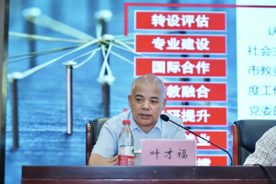 校长叶才福表示,学校行政严格落实市教卫党委、市教委的各项工作部署,对标董事会年度工作纲要七个力争的任务要求,在校党委的政治引领下,在监察委、监事会的护航保障下,紧紧围绕学校人才培养中心工作,结合主题教育活动的目标要求,重点推进转设评估、专业建设、国际合作、产教融合、科研提升、招生就业、经费支撑、资产保障等大事要事,取得了一系列成果。同时提出了专业优化必须与时俱进、毕业就业必须尽早谋划、管理服务必须提升能级、天华理念必须融入课程的反思,表达了要寻找根源,着力整改的决心。