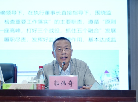 总校监郭伟奇总结了监察委在参与学校人才引进审议;参加土地校舍达标研讨;维护章程执行,推进内部治理能力现代化;守护办学理念,提升监督检查效能;聚焦重点工作,提高常态化检查质量等方面的具体举措和在参与学校全局性问题、调查研究能力、履职尽责能力等方面存在的问题,表示要更加注重发挥监督治理的效能,促进学校各项事业取得新进展。