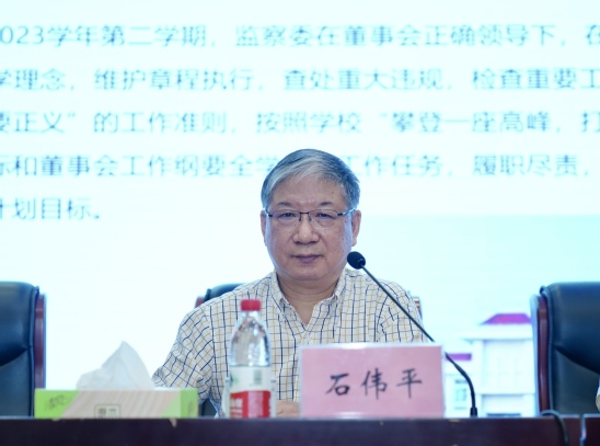 石伟平在总结中指出,本学期,学校上下紧紧围绕主题教育主线,严格对照董事会提出的七个力争,继续以转设评估为目标,狠抓专业优化、硕士点培育、中外合作办学工作,大力推进科研和高学历高职称师资队伍建设,严格依法办学,落实落细各项监督措施,较好地完成了董事会布置的各项工作任务,取得了不少成果。希望大家再接再厉,继续在专业建设、师资队伍、就业工作、学生考研、活力课堂、科研能力等方面下功夫,为学校的改革和事业发展贡献智慧和力量。