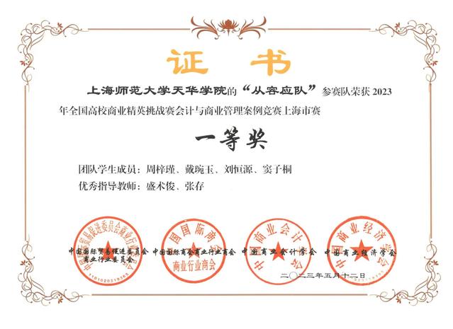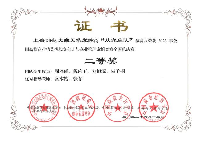 在刚刚落幕的2023年全国高校商业精英挑战赛会计与商业管理案例竞赛全国总决赛中,商学院财务管理的代表队“从容应队”在决赛的1200余支本科组队伍中脱颖而出,获得了全国总决赛的二等奖,此前该代表队在上海市市赛中是以一等奖的身份入围全国总决赛的,可谓是获得了一系列的佳绩。