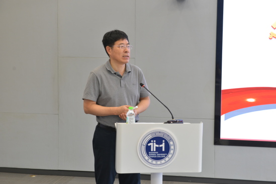 接下来,宣传部长齐砚奎老师开展主题讲座《浅谈课程思政理念》,从思政课程到课程思政的角度,向新老师介绍了将思想政治教育融入高校课程教学的过程。思想政治教育,利用好课堂教学过程能够对学生的思想品德、行为规范,乃至人生观、价值观起到重要影响。齐部长鼓励新教师们,不仅要教好专业知识,更要通过教学过程反思个人的一言一行,首先从提升教师自我的思想政治素养开始,言传身教,担当学生的榜样楷模,成为学生灵魂的塑造者。