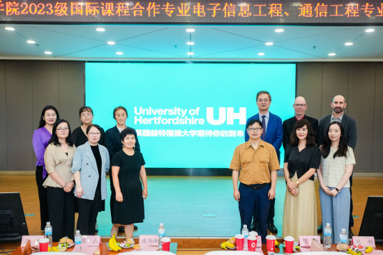 出席开学典礼的有英国赫特福德大学(University of Hertfordshire,UH)物理、工程与计算机科学学院副院长Felix Zhu先生,UH中国合作项目总监Yvonne Yan女士, UH中国市场经理Emily Zhou女士;人工智能学院凌旭峰院长,赵科书记,吕博副院长,林军教授,何燕老师等;我校国际交流处胡珍处长,梁杰副处长,赵诗佳老师,英语外教Natan和Kaan。开学典礼由人工智能学院吕博副院长主持。