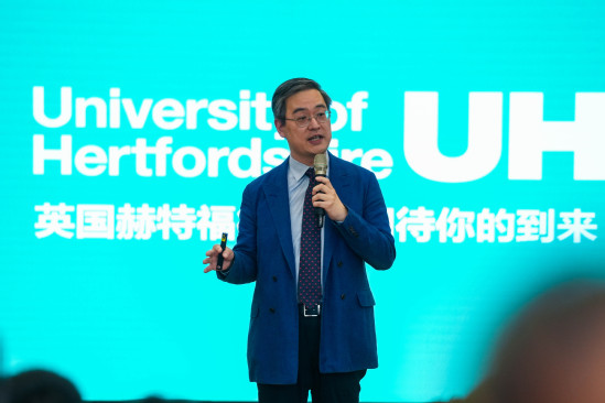 随后,UH物理、工程与计算机科学学院副院长Felix Zhu先生致辞并详细解读双方的国际课程合作项目,并且对赫特福德大学的历史沿革、教学环境、就业前景、地理位置等信息进行了详尽的介绍。赫特福德大学是一所现代化的综合性大学,秉承“重就业,重实践”的教育理念,多次获评英国最受欢迎高校。为了让学生和家长对于英国以及赫特福德大学有切身体验,赫特福德大学还专门为合作院校开放了为期3周的暑期短期游学项目,欢迎家长与学生共同参加游学,共同体验英伦文化与英国高等教育环境。学生与家长共游的新颖的游学方式在会议现场立刻获得了同学们与家长们的积极响应!