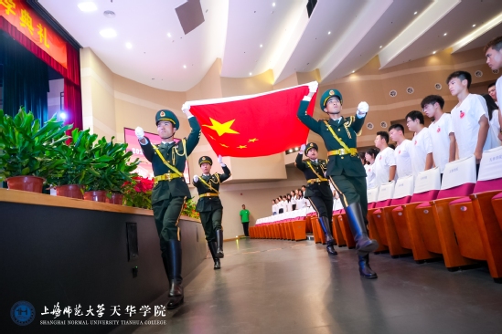 开学典礼上学校领导为新生代表佩发校徽,一枚小小的校徽于新生而言,代表着天华人的身份,赋予了同学们新的责任与使命。全体2023级新生在学保处副处长、校团委书记杨央的带领下庄严宣誓。“青春心向党,建功新时代”、“青春逢盛世,奋斗正当时”铿锵有力的誓言,为青春启程吹响了号角,他们眼中闪烁的是朝气的光芒,肩上担负的是时代的大任。