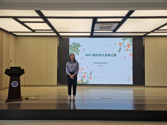 10月11日中午11:30分图书馆四楼报告厅举行第49期博士沙龙,本期沙龙特别邀请来自初等教育学院的校内教学名师韩笑天博士与大家分享《SSCI期刊论文发表之路》的心得与体会。我校近四十名教师积极参加了此次学术活动,大家踊跃报名参加,现场气氛热烈,可见大家对SSCI期刊论文发表的浓厚兴趣。活动由教师工作部副部长李艳艳主持。