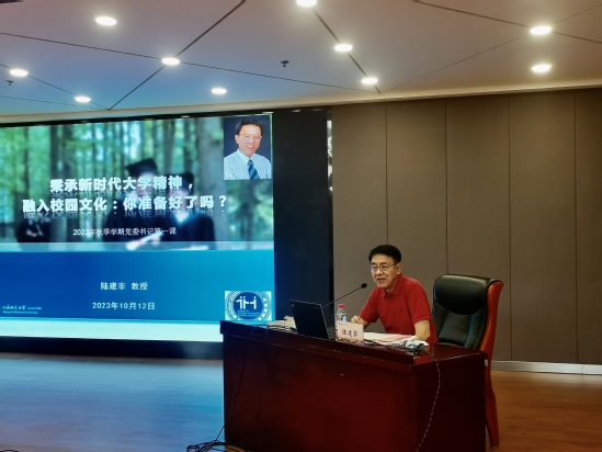 10月12日下午,党委书记陆建非以《秉承新时代大学精神,融入校园文化》为题为我校师生们讲授2023年秋季学期“开学第一课”。200余名师生现场聆听报告,会议由学保处常务副处长包静波主持。