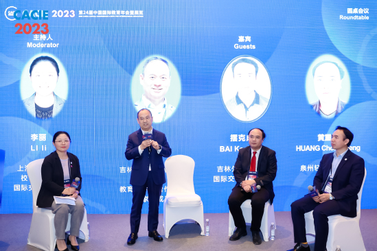 圆桌讨论环节由上海杉达学院校长助理、国际交流处处长李丽博士主持,邀请了吉林大学莱姆顿学院副院长何曜、泉州轻工职业学院副校长黄重成、吉林外国语大学国际交流处副处长摆克成参加,共同探讨中外合作办学管理的一些重要实操性内容。