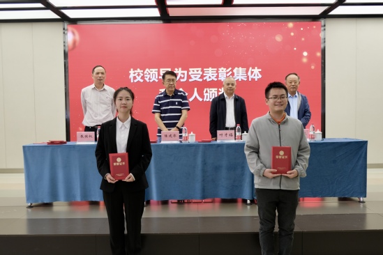 为了进一步提升学校毕业生就业工作队伍的水平,树立典型,更好地调动和激励就业工作队伍的积极性和创造性,会上还表彰了一批就业工作先进集体和先进个人,校领导共同为获奖代表颁奖并合影留念。
