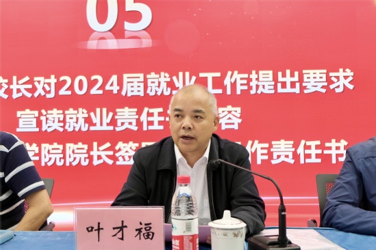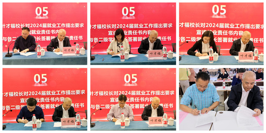 会议的最后,叶才福对2024届就业工作提出要求,宣读就业责任书内容,并与各二级学院院长签署就业工作责任书,全力为2024届毕业生就业工作保驾护航。就业指导中心副主任吴莺也代表就业部门表态,将进一步落实会议要求,强化责任与担当,做好下一年的毕业生就业工作。