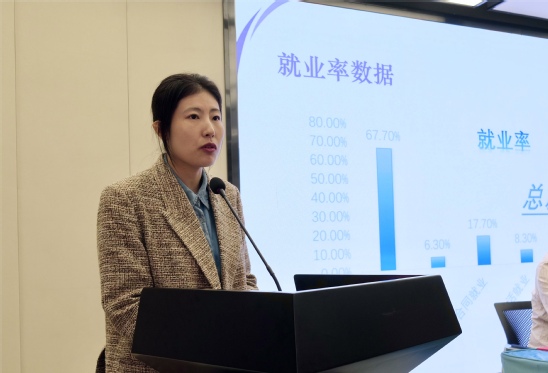 上海市2023届高校毕业生就业优秀工作者,商学院总支书记智瑀、艺术设计学院辅导员狄怨怨、学前教育学院辅导员朱可作为代表依次上台发言,分享就业工作经验。智瑀表示,疫情的反复和就业模式的转型改变给就业工作带来了更大的机遇和挑战。学院专门成立就业工作领导小组,党政联动,齐抓共管,落实暑期社会实践,积极进行考研指导。在大家的共同努力下,23届毕业生总体就业率达到预期效果。狄怨怨表示,作为一名毕业生辅导员,首先要知道就业工作对于学生和国家社会的重要性;其次要积极面对学生遇到的就业问题,提前了解学生情况,做到早排练、早动员、早规划、早布局。朱可表示,作为一名一线就业工作者,要分析研究学生特点,各个击破保就业、拓展渠道分类指导,三全协力稳就业、争取外部力量支持,千方百计帮助学生高质量就业。