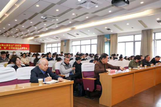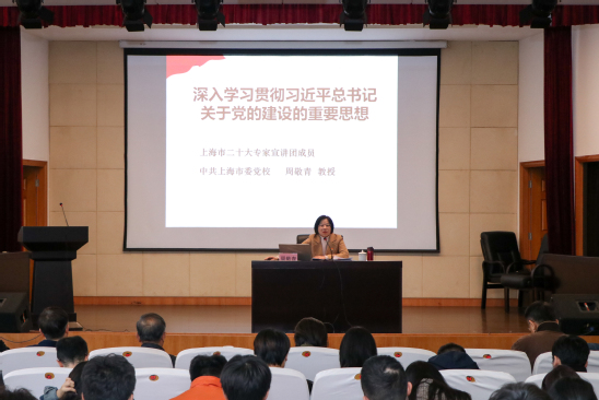 11月16日上午,学校党委在明华楼五楼报告厅开展干部党员理论辅导报告会暨中心组主题教育“回头看”集体学习会,特邀上海市二十大专家宣讲团成员、中共上海市委党校周敬青教授作《学习贯彻习近平总书记关于党的建设的重要思想》主题报告。学校党委中心组成员、二级学院党总支书记、基层党务干部、思政课教师及学生党员代表参加会议。会议由党委书记陆建非主持。