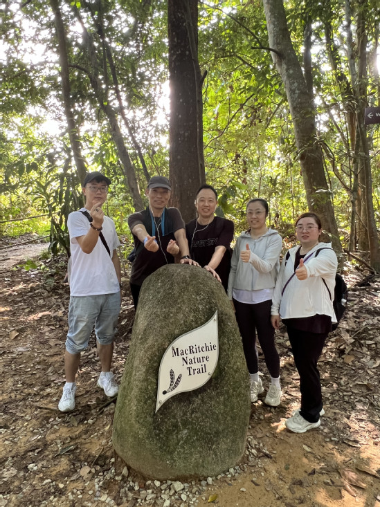 六位学员在学业之余,还积极参加了两次富有意义的集体活动。11月23日,班级一行21人齐聚麦里芝水库,进行了一场约12公里的徒步活动。麦里芝水库是新加坡最古老和最大的水库之一,坐落在中部的中央水库区。这片水域被茂密的原始森林所环绕,是新加坡备受保护的自然生态之一。这里不仅有着丰富多样的植被,还吸引了众多自然爱好者和生态学家前来探索。