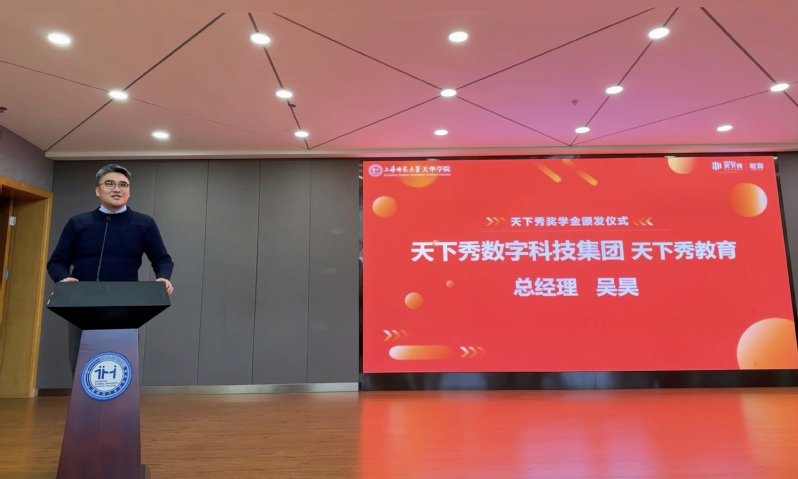 天下秀教育事业部院校合作经理殷宏科向同学们讲解了专业奖学金评选标准介绍,向获奖的同学们表示祝贺,并鼓励其他同学再接再厉。