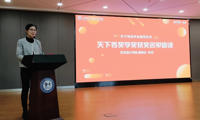 此后,艺术设计学院副院长朱花向大家宣读了本次受表彰的名单,共有26名同学获得了本次奖学金,21、22年级各有一等奖1名、二等奖2名、三等奖5名和优秀实践奖5名。