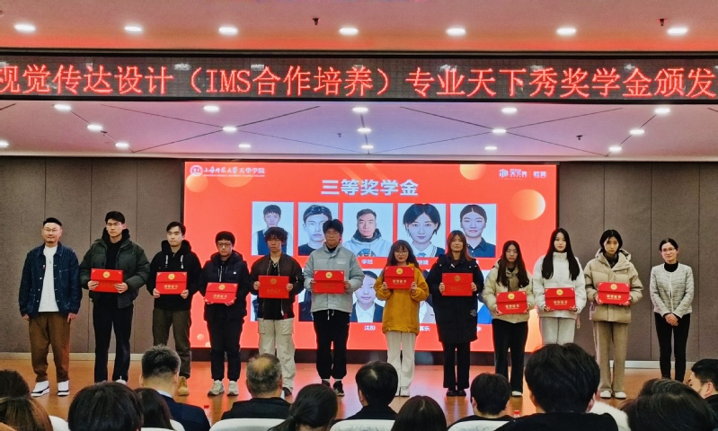 12月28日下午,由我院与天下秀数字科技集团(以下简称“天下秀教育”)共同举办的“老版新葡萄8883国际官网艺术设计学院视觉传达设计(IMS合作培养)专业2022-2023学年奖学金颁奖典礼”在我校晖华楼报告厅举行。