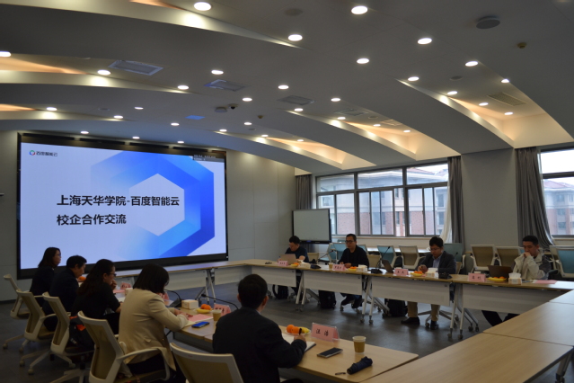 (天华学院与北京百度网讯科技有限公司举行校企合作方案洽谈会现场)