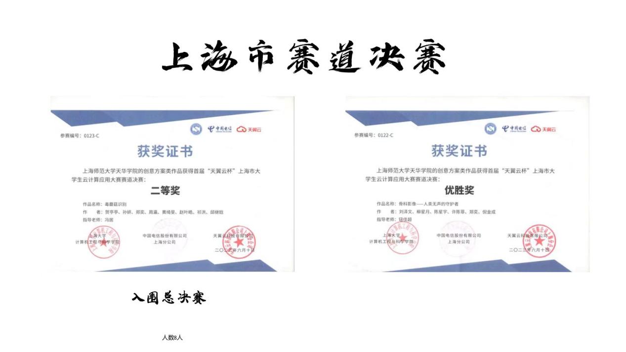 (首届“天翼云杯”上海市大学生云计算应用大赛老版新葡萄8883国际官网获奖情况)